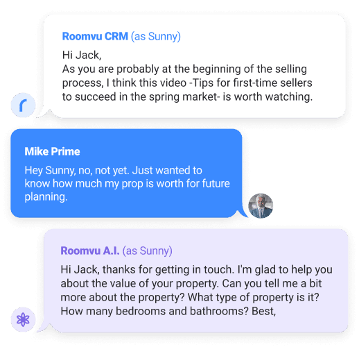 Roomvu AI generates personalized SMS and email responses that engage leads, build trust and capture their interest. Effortlessly scale your lead engagement while maintaining a human touch.